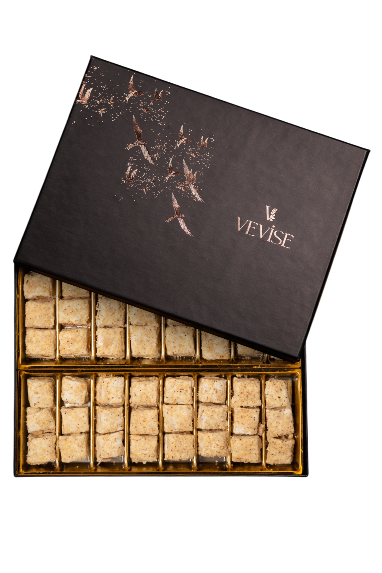Bu özel lokum, geleneksel tatlı anlayışını modern bir yorumla buluştururken, damakta kalan hafif aromasıyla kahve molalarınıza eşlik eder. Günlük tatlı keyiflerinde ya da sevdiklerinize hediye olarak sunabileceğiniz Vevise Fındıklı Lokum, zarif sunumu ve doğal lezzetiyle öne çıkar.