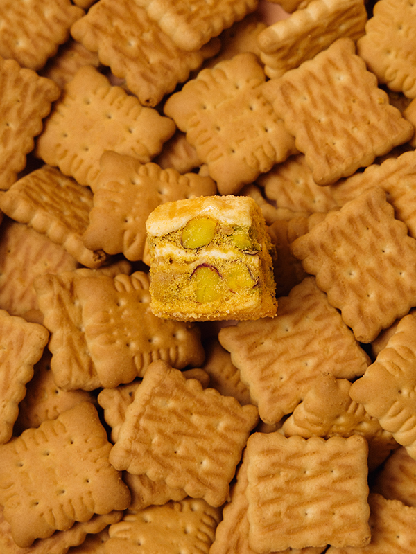 Vevise Petibör Bisküvili Karamelli Lokum, klasik lezzetleri modern dokunuşlarla bir araya getiriyor! İnce sultan lokum katmanlarının arasında yer alan özel karamel dolgusu, petibör bisküvi parçacıklarıyla birleşerek damakta tatlı ve çıtır bir denge oluşturuyor. %25 oranında Antep fıstığı ile zenginleştirilen bu özel tarif, karamelin tatlılığı ve fıstığın doğal aromasıyla unutulmaz bir deneyim sunuyor.